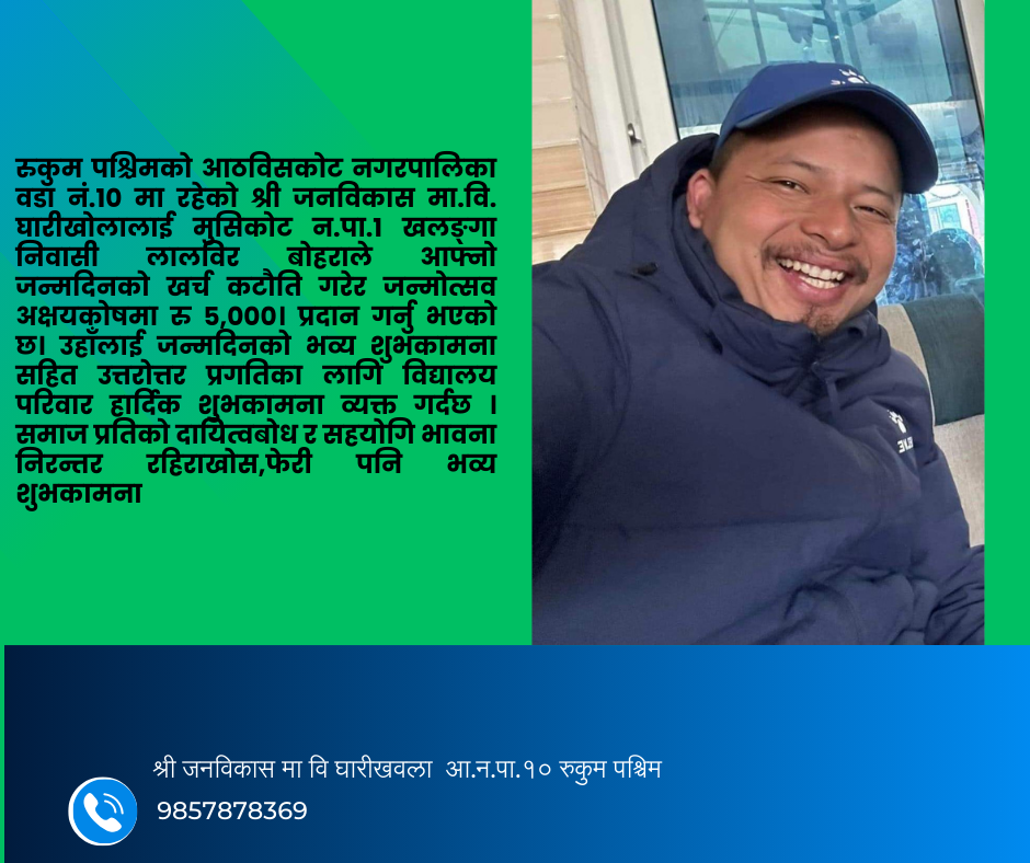 जन्मदिन मनाउने नयाँ प्रचलन स्थापना News, अर्थदान, वस्तुदान / By Janabikas MaVi … जन्मदिन मनाउने नयाँ प्रचलन स्थापना Read More »