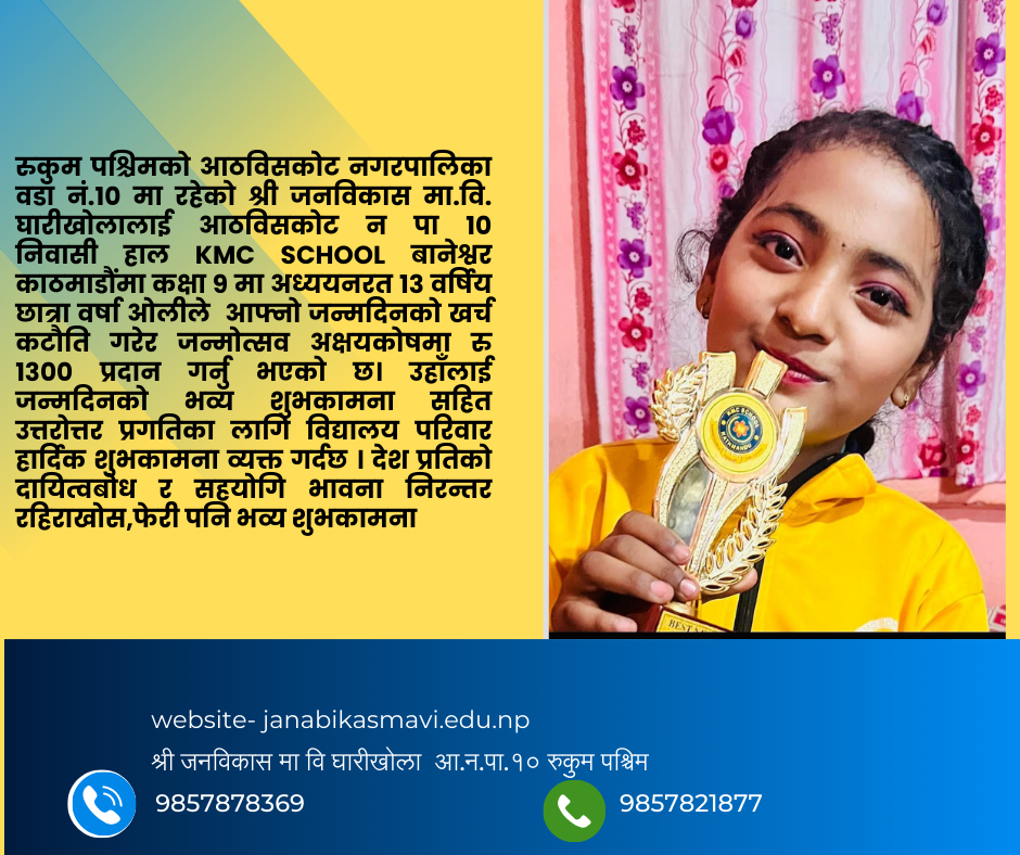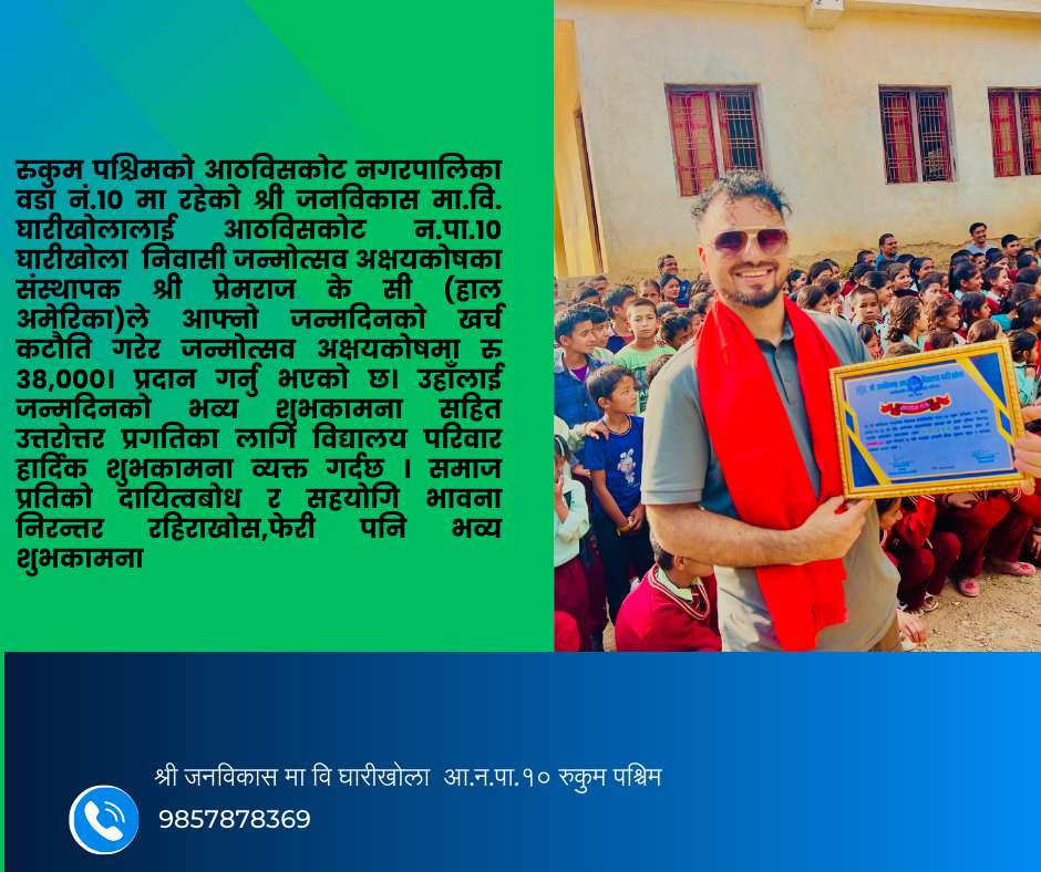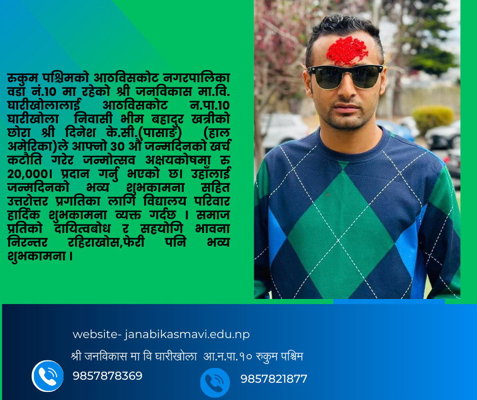 जनविकास प्रति सबैको आशा थपिदै News, अर्थदान / By Janabikas MaVi … जनविकास प्रति सबैको आशा थपिदै Read More »